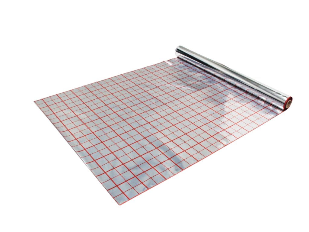 Reflexní izolační fólie s rastrem pro pokládku podlahového vytápění.