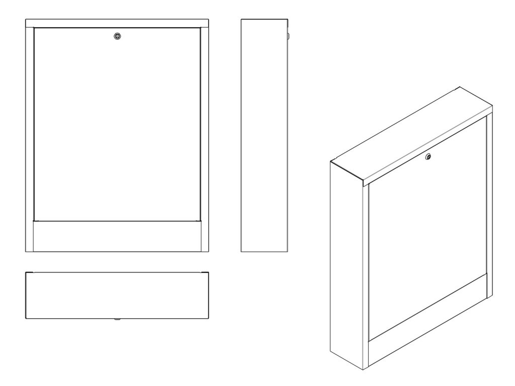 - Určena pro nadomítkovou montáž rozdělovače podlahového topení.