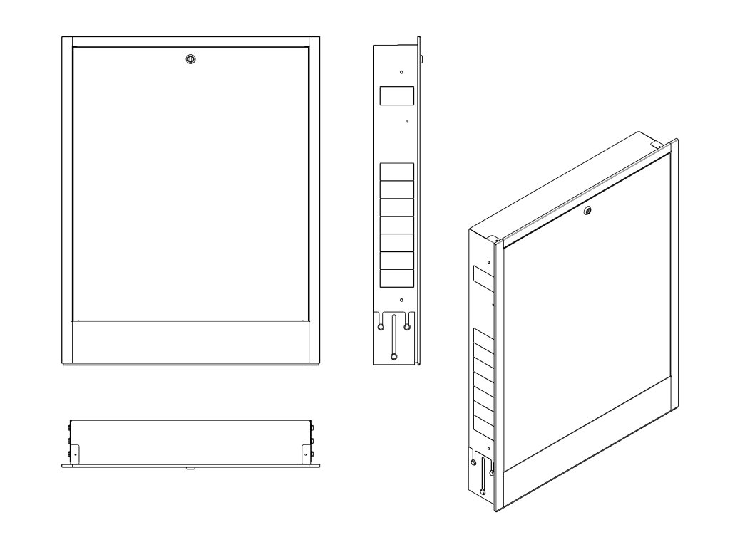Umožňuje elegantní a bezpečné umístění rozdělovače přímo do stěny, čímž šetří prostor a zajišťuje snadný přístup k regulaci i servisu topného systému.